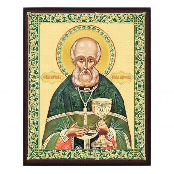 Икона живописная на доске 18х36 масло, золоченый нимб Иоанн Кронштадтский, 03877