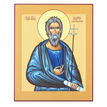 Икона живописная на доске 18х24 темпера, золоченый нимб, ковчег Андрей Первозванный, 03867