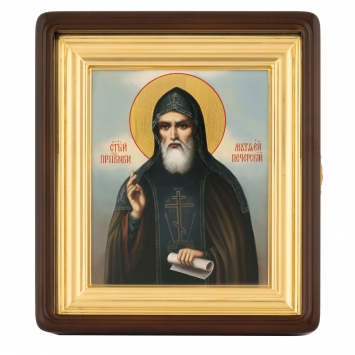 Икона живописная на доске в киоте 18х24 масло, золоченый нимб, киот №1 Матфей, 00042