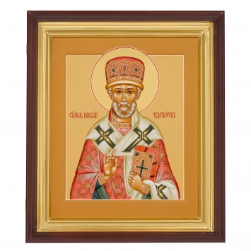 Икона живописная на доске в киоте 18х24 темпера, золоченый нимб, ковчег, киот №1 Николай Чудотворец, 05035