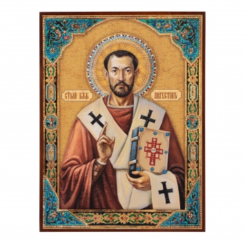 Икона на доске 30х40 объемная печать, лак №2 Августин