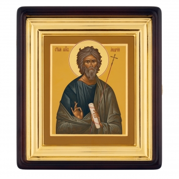 Икона живописная на доске в киоте 18х24 темпера, золоченый нимб, ковчег, киот №1 Андрей Первозванный, 03408
