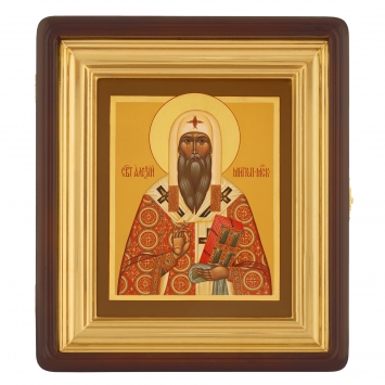 Икона живописная на доске в киоте 18х24 темпера, золоченый нимб, ковчег, киот №1 Алексий митрополит Московский, 01280