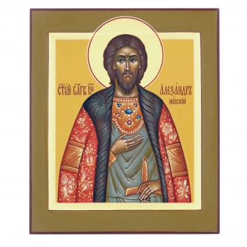 Икона живописная на доске в киоте 18х24 темпера, золоченый нимб, ковчег, киот №1 Александр Невский, 02900