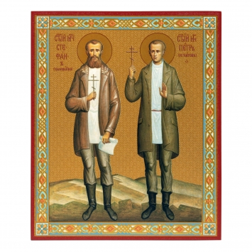Икона на доске 40х50 объемная печать, лак Стефан и Петр