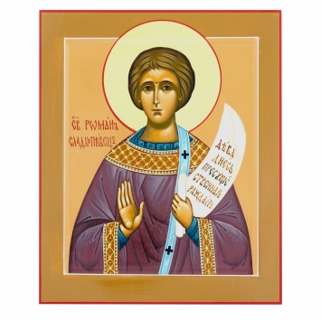 Икона живописная на доске 18х24 темпера, золоченый нимб, ковчег Роман Сладкопевец, 03874