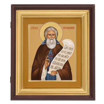 Икона живописная на доске в киоте 24х30 темпера, золоченый нимб, ковчег, киот №1 Сергий Радонежский, 05147