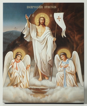 Икона на доске 33х40 объемная печать, лак Воскресение Христово 2