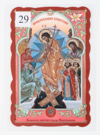 Икона в жесткой ламинации 8х11 с оборотом, тиснение, высечка, частица земли Воскресение Христово 29