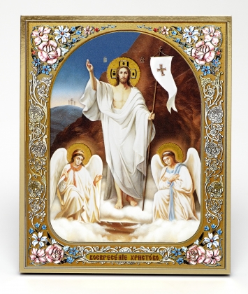 Икона фото в киоте 24х30 объемная печать, киот №12 Воскресение Христово