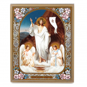 Икона на доске 33х40 объемная печать, лак Воскресение Христово 4