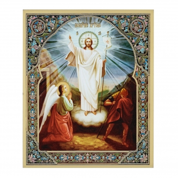 Икона в жесткой ламинации 8х11 с оборотом, тиснение, высечка, частица земли Воскресение Христово 2