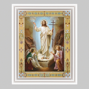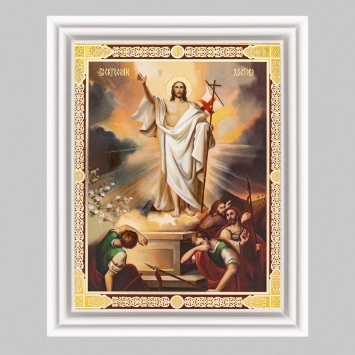 Икона в деревянной рамке №3 11х13 (белая) двойное тиснение Воскресение Христово 65