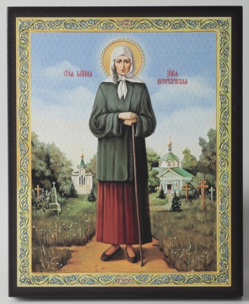 Икона на доске 33х40 объемная печать, лак Матрона с житием