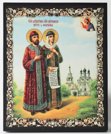 Икона на оргалите №1 30х40 двойное тиснение Петр и Феврония 2