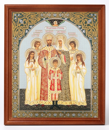 Икона в деревянной рамке №1 18х24 двойное тиснение Царская семья