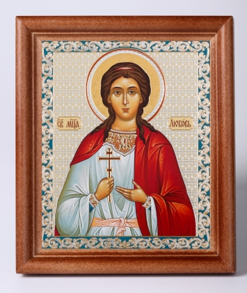Икона в деревянной рамке 11х13 Набор с Днем Ангела, двойное тиснение Любовь Римская, отроковица, мц. (2)