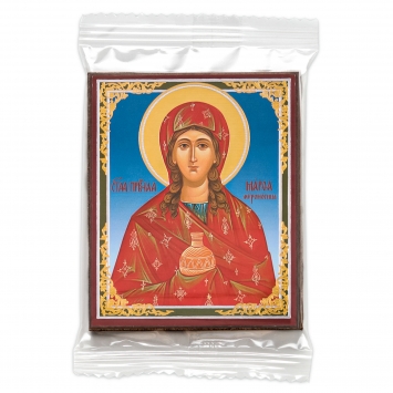 Икона на деревянном планшете 6х9 двойное тиснение, аннотация, упаковка Марфа Вифанская, Мироносица, прав.