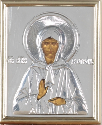Икона в пластмассовой рамке 4х5 металлизированная риза Матрона Московская (с венчиком)