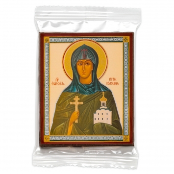 Икона на деревянном планшете 6х9 двойное тиснение, аннотация, упаковка Евфросиния Полоц. игум. Спасо-Евфрос. жен. м-рь