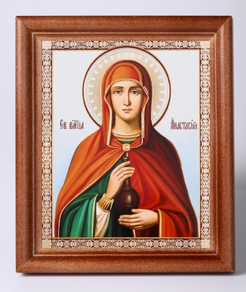 Икона в деревянной рамке №1 11х13 двойное тиснение Анастасия Узорешительница, св., вмц. (2)