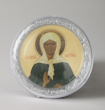 Икона в пластмассовой рамке 4х5 круглая Матрона Московская (с венчиком)