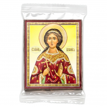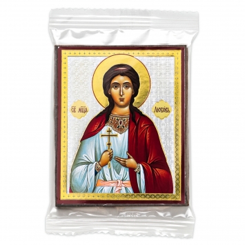 Икона на деревянном планшете 6х9 двойное тиснение, аннотация, упаковка Любовь Римская, отроковица, мц. (2)