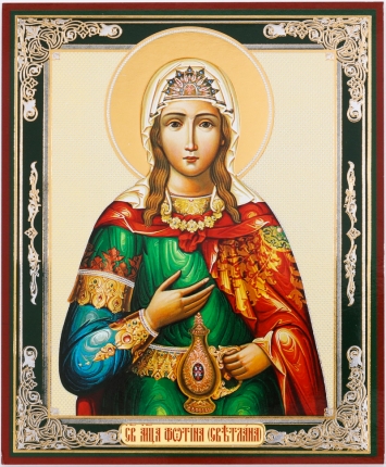 Икона в жесткой ламинации 5х8 с оборотом Фотина (Светлана)