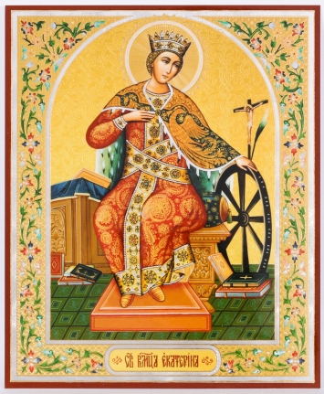 Икона на оргалите №1 11х13 двойное тиснение Екатерина Александрийская, вмц. (2)