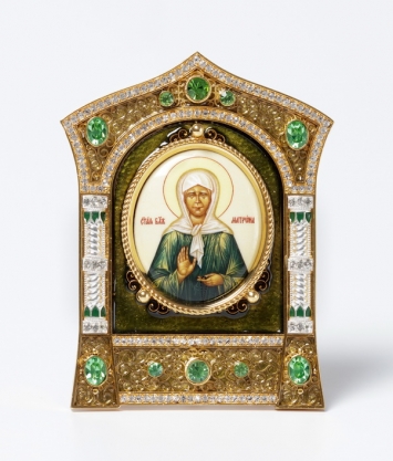 Икона настольная №136 деколь, эмаль / золочение, серебрение / Матрона