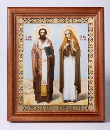 Икона на доске 13х15 объёмная печать, лак Киприан и Иустина