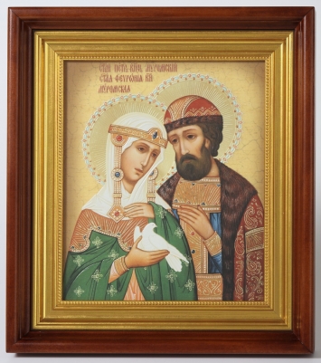 Икона в киоте 24х30 фото на пластике объёмное, багетный подрамник№1 Петр и Феврония