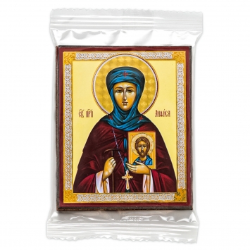 Икона на деревянном планшете 6х9 двойное тиснение, аннотация, упаковка Анфиса