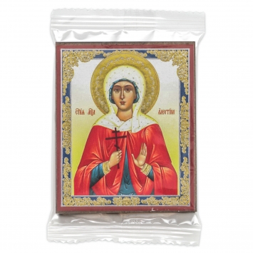 Икона на деревянном планшете 6х9 двойное тиснение, аннотация, упаковка Антонина св. мц. Кродамнская, дева (2)