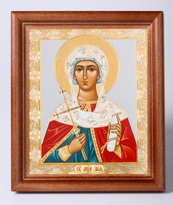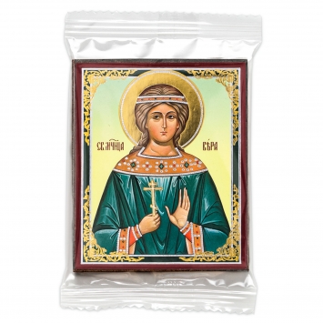 Икона на деревянном планшете 6х9 двойное тиснение, аннотация, упаковка Вера Римская, отроковица, мц. (2)