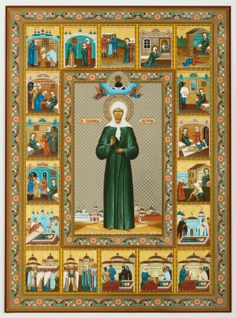 Икона на оргалите №1 30х40 двойное тиснение Матрона Московская (ростовая) с житием 2