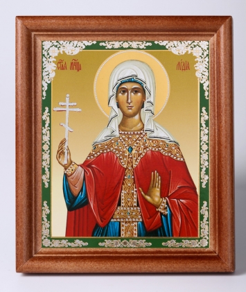 Икона в деревянной рамке 11х13 Набор с Днем Ангела, двойное тиснение Лидия Иллирийская, мц. (4)