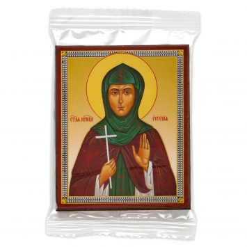 Икона на деревянном планшете 6х9 двойное тиснение, аннотация, упаковка Евгения Римская, прмц.