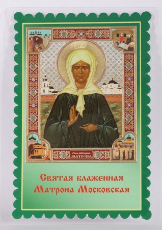 Икона в жесткой ламинации 8х11 с оборотом, двойное тиснение, высечка Матрона Московская (с венчиком)