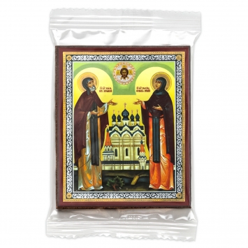 Икона на деревянном планшете 6х9 двойное тиснение, аннотация, упаковка Петр и Феврония 2