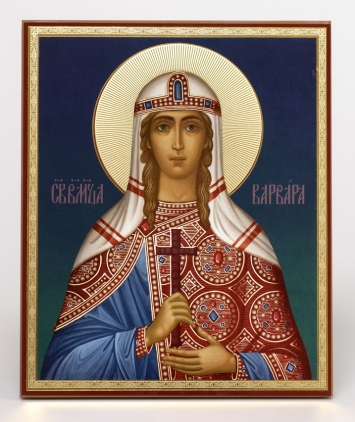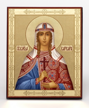 Икона на деревянном планшете 11х13 двойное тиснение (18мм), аннотация с тиснением, суперупаковка Варвара