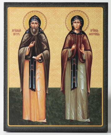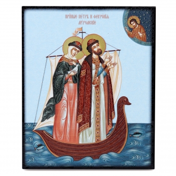Икона на доске 13х15 объёмная печать, лак Петр и Феврония 4