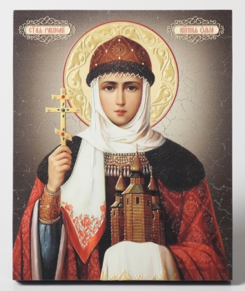 Икона на деревянном планшете 6х9 двойное тиснение, аннотация, упаковка Ольга, св. равноап. вел. княгиня (5)