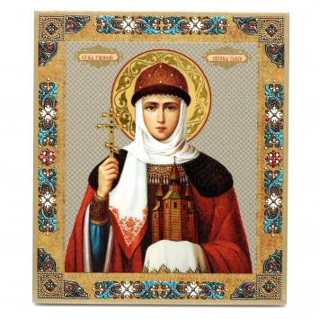 Икона настольная 10х12 на подставке, объемная печать Ольга, св. равноап. вел. княгиня