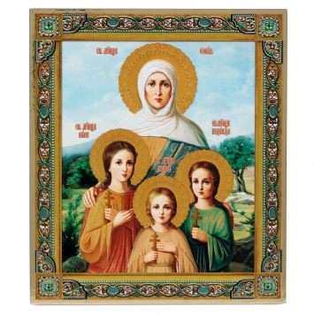 Икона на доске 13х15 золоченое покрытие, объёмная печать, лак Вера, Надежда, Любовь