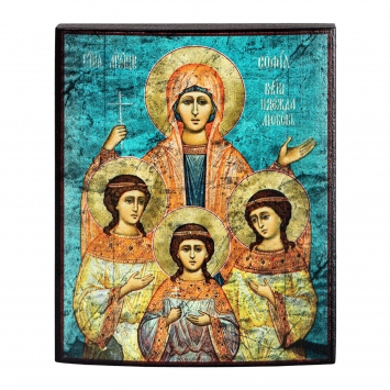 Икона на дереве 9х11 лак Вера, Надежда, Любовь