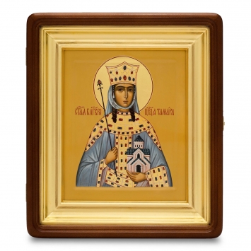 Икона живописная на доске в киоте 18х24 темпера, золоченый нимб, ковчег, киот №1 Тамара