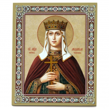 Икона на доске 18х24 золоченое покрытие, объёмная печать, лак Людмила Чешская,