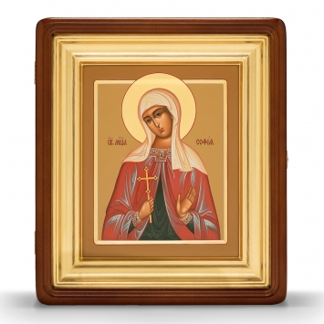 Икона живописная на доске в киоте 18х24 масло, золоченый нимб, киот №1 Софья Римская