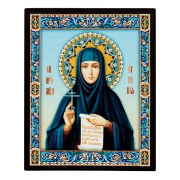Икона на доске 13х15 золоченое покрытие, объёмная печать, лак Евфросиния Московская